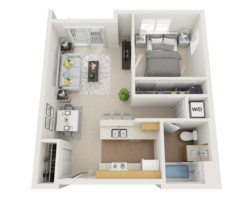 1 Bed, 1 Bath, 606 sq ftAvailable NowModel Gallery