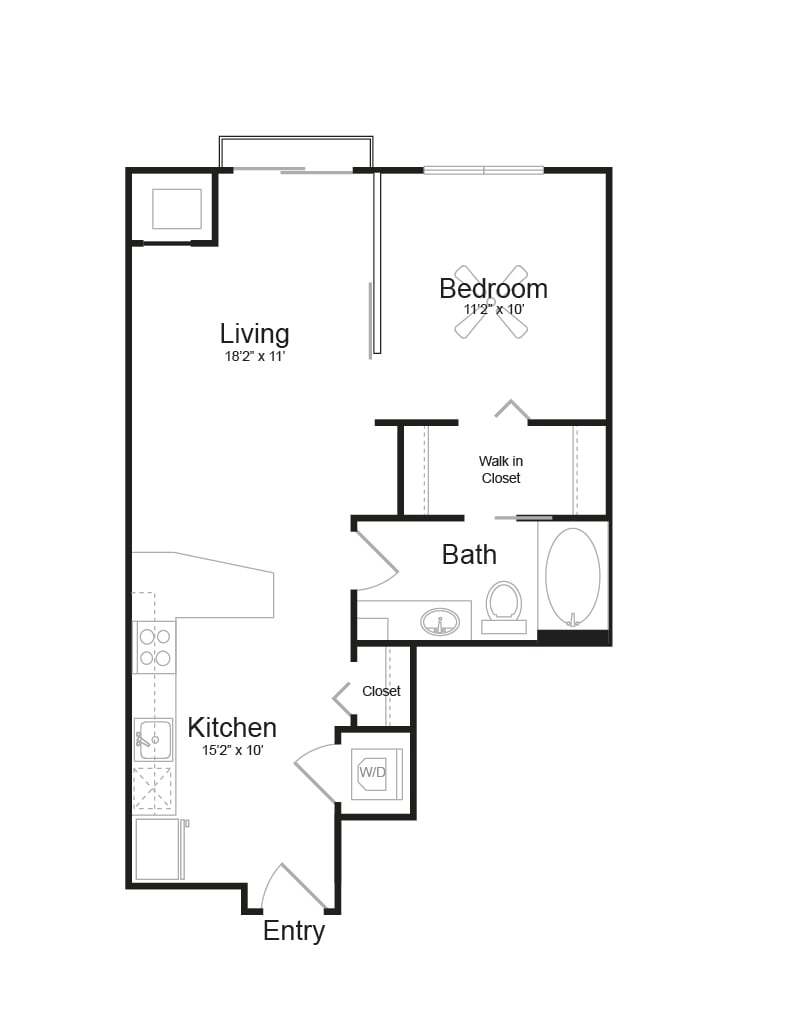 A8 - Floorplan 1 Apartment Unit: 225Apartment Model: A8$1,414Studio, 1 Bath, 673 sq ftAvailable November 24, 20251 Bedroom