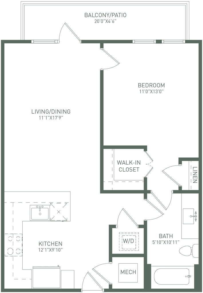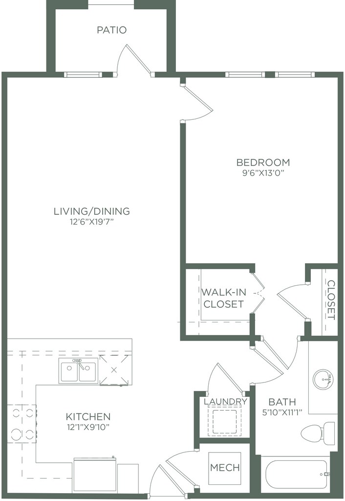 1x1 - Floorplan 6 Apartment Unit: 1260Apartment Model: 1x1$1,2221 Bedroom, 1 Bath, 745 sq ftAvailable NowFloorplan 1x1