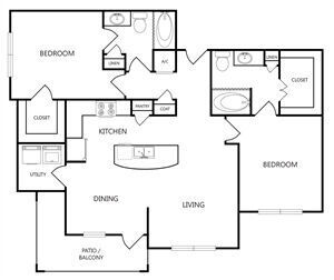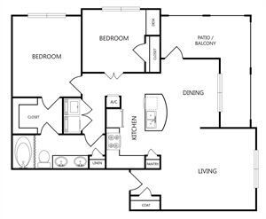 2 Beds, 2 Baths, 1176 sq ftAvailable NowLargest 2 BedroomThis is the largest 2 Bedroom at this PropertyModel Gallery