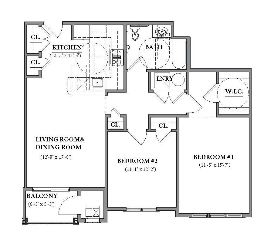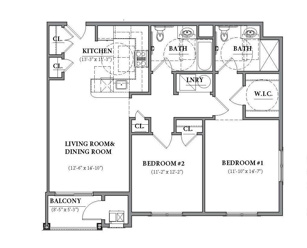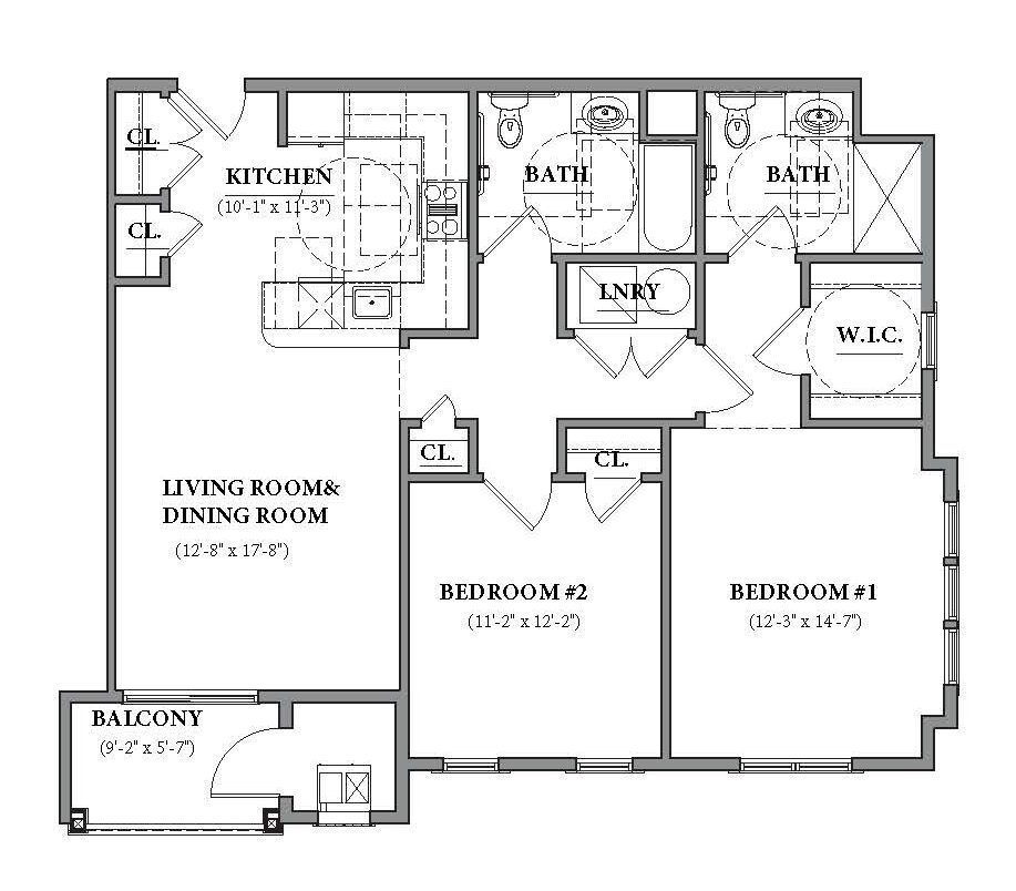 2 Beds, 2 Baths, 1095 sq ftLargest 2 BedroomThis is the largest 2 Bedroom at this PropertyModel Gallery