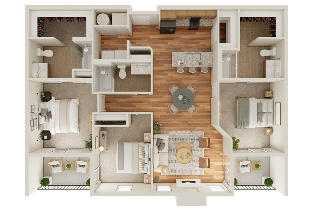 Apartment Model: 3Bdrm - 1115 Building (B)From $1,5123 Bedroom, 3 Bath, 1444 sq ftAvailable Now![]()