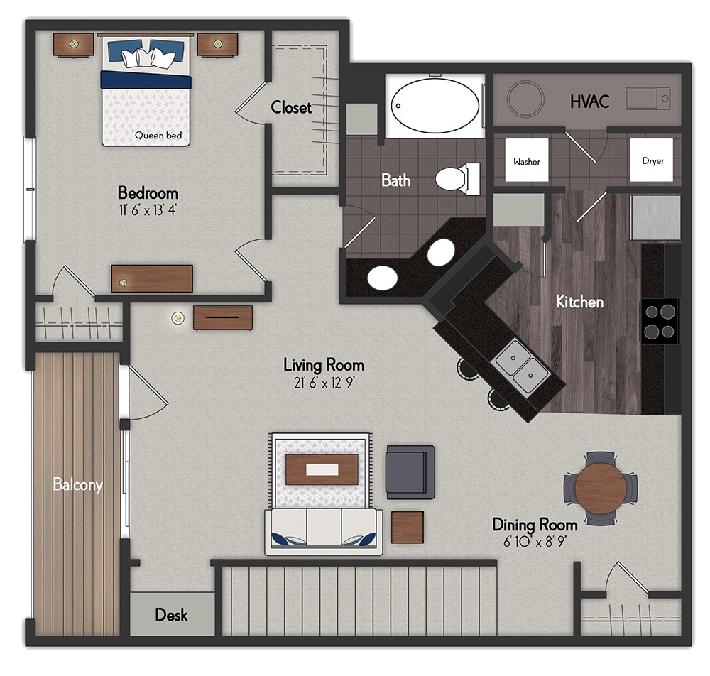 1 Bed, 1 Bath, 947 sq ftModel Gallery