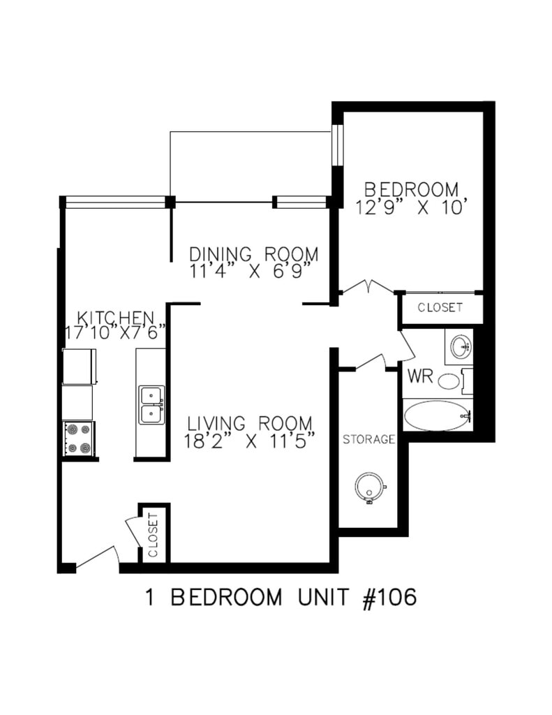 1 Bedroom - Floorplan 3 2 Bedrooms