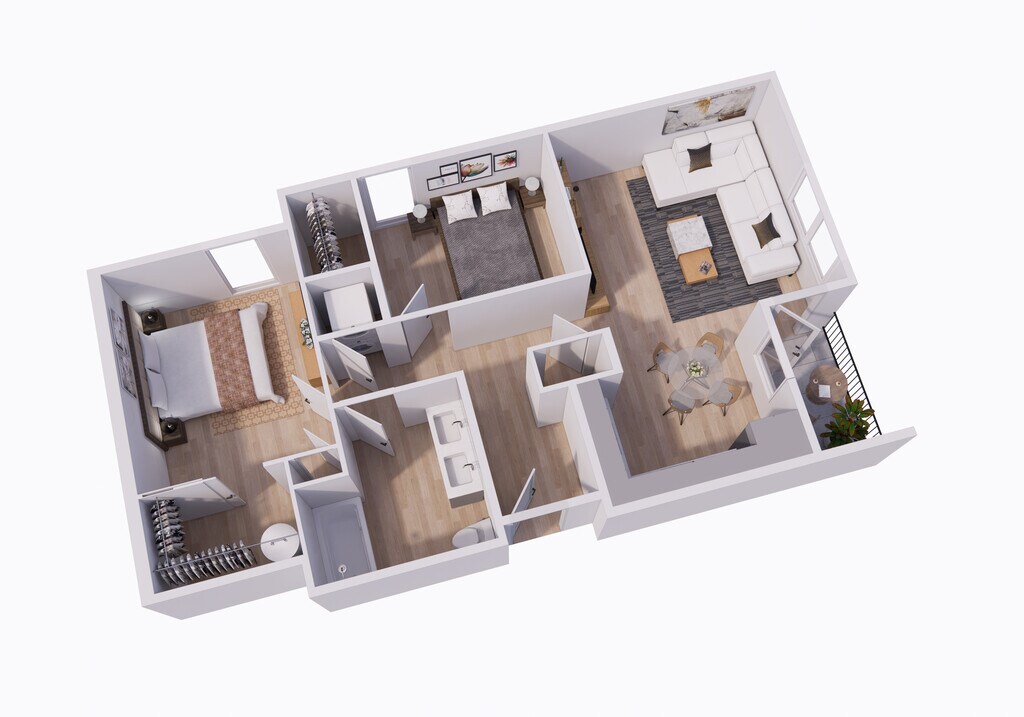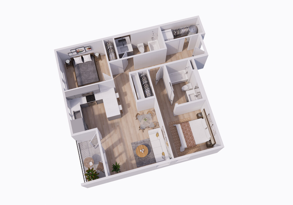 2 Beds, 2 Baths, 907-930 sq ftLargest 2 BedroomThis is the largest 2 Bedroom at this PropertyModel Gallery
