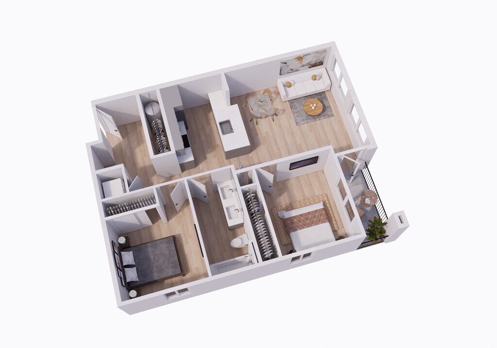 2 Beds, 1 Bath, 821 sq ftModel Gallery