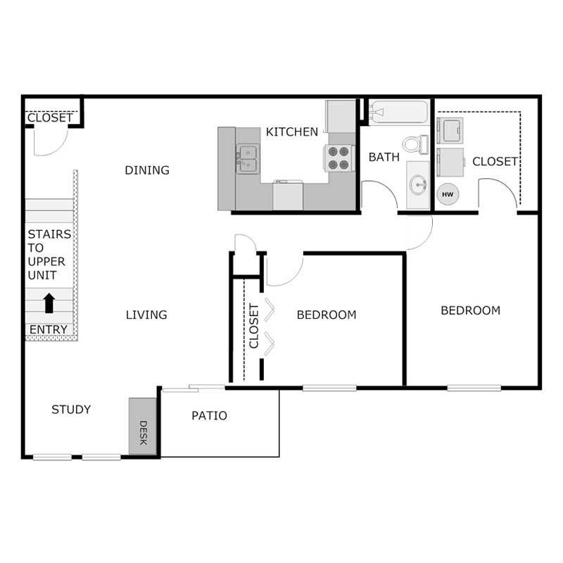 2 Bedroom 1 Bathroom - Lower - Floorplan 1 2 Bedroom 1 Bathroom - Upper