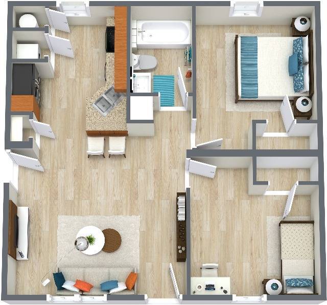 2 Beds, 2 Baths, 915 sq ftModel Gallery