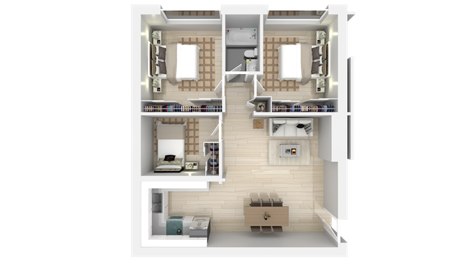 Two Bedroom One Bath - Floorplan 3 Apartment Unit: 206CApartment Model: Two Bedroom One Bath2 Bedroom, 1 Bath, 800 sq ftAvailable NowApartment Unit: 217BApartment Model: Two Bedroom One Bath2 Bedroom, 1 Bath, 800 sq ftAvailable NowApartment Unit: 219AApartment Model: Two Bedroom One Bath2 Bedroom, 1 Bath, 800 sq ftAvailable January 18, 20263 Bedrooms