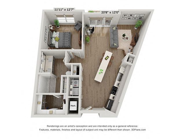Apartment Model: S1From $1,275Studio, 1 Bath, 579 sq ftAvailable NowFloor plans are artist's rendering. All dimensions are approximate. Actual product and specifications may vary in dimension or detail. Not all features are available in every rental home. Prices and availability are subject to change. Base rent is based on monthly frequency. Additional fees may apply, such as but not limited to package delivery, trash, water, amenities, etc. Deposits vary. Please see a representative for details.