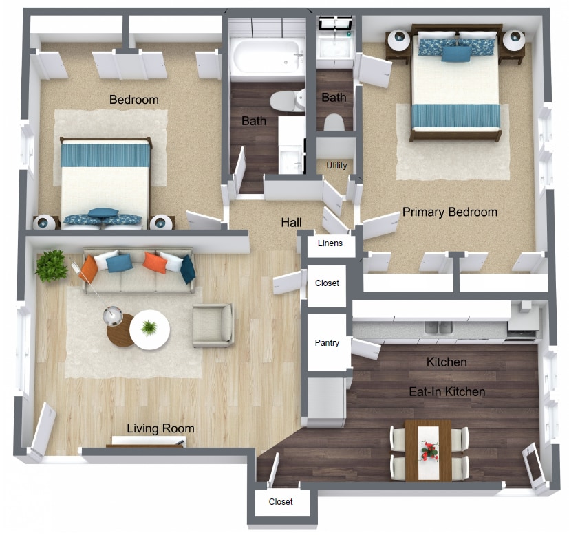 Studio to 3 Bedroom Apartments at Trails End Apartments currently range from $979 to $1,485