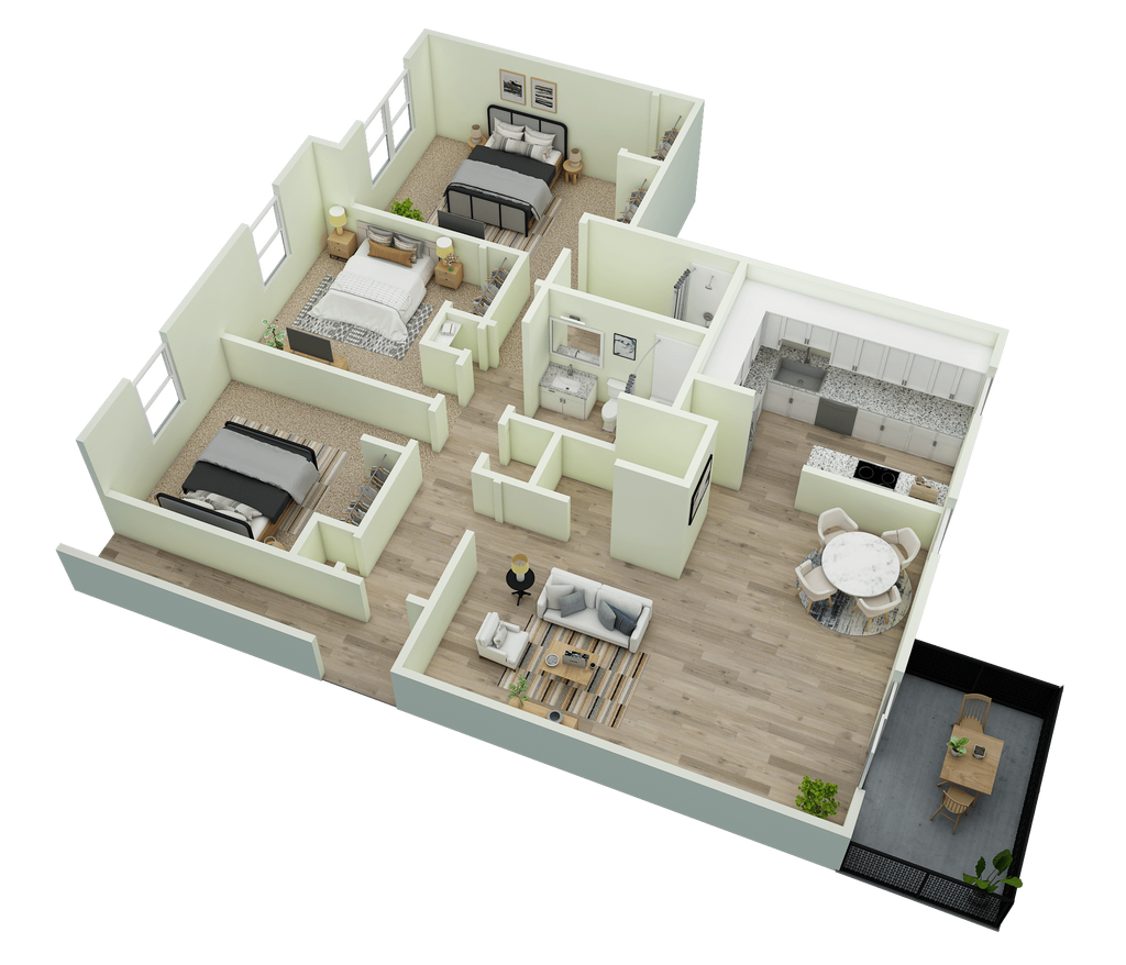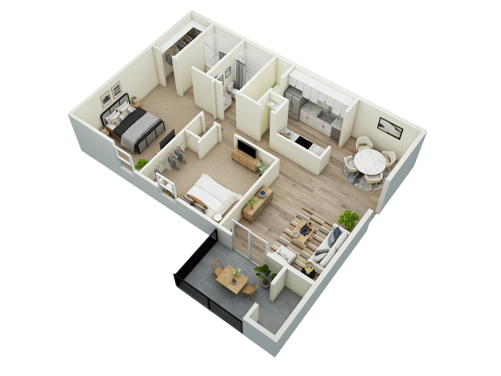 2 Beds, 1 Bath, 880 sq ftAvailable NowModel Gallery
