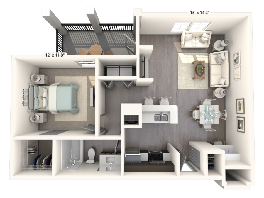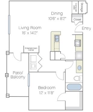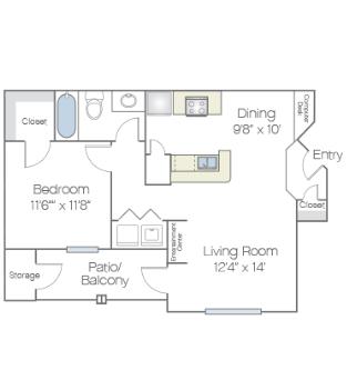 Apartment Model: A1From $9961 Bedroom, 1 Bath, 726 sq ftUnavailable![]()