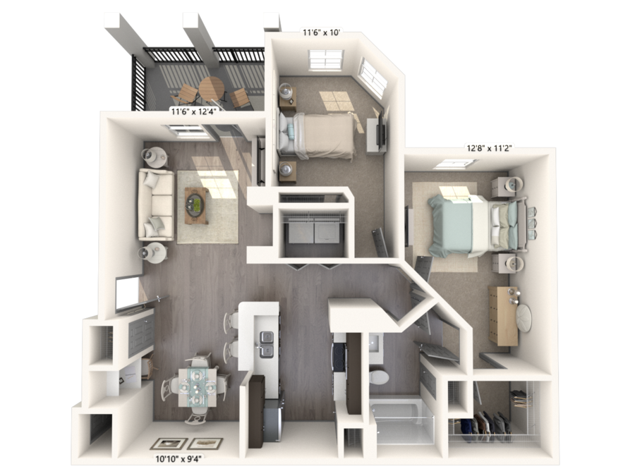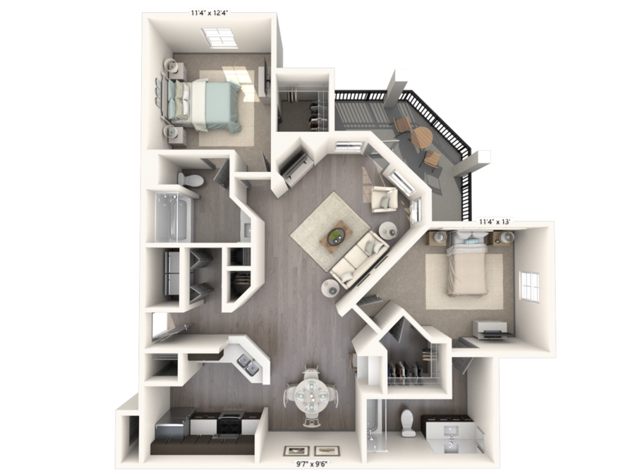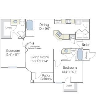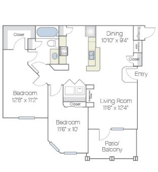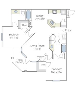 2 Beds, 1 Bath, 970 sq ftAvailable NowModel Gallery