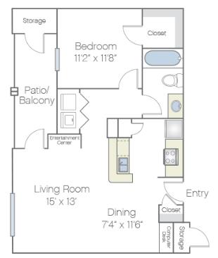Apartment Model: A3From $9111 Bedroom, 1 Bath, 745 sq ftAvailable November 25, 2025![]()