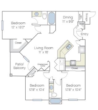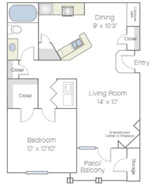 1 Bed, 1 Bath, 791 sq ftAvailable NowLargest 1 BedroomThis is the largest 1 Bedroom at this PropertyModel Gallery