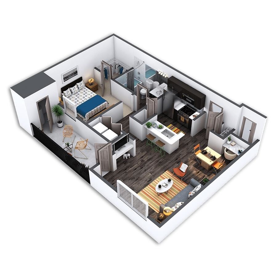 1 Bed, 1 Bath, 726 sq ftModel Gallery