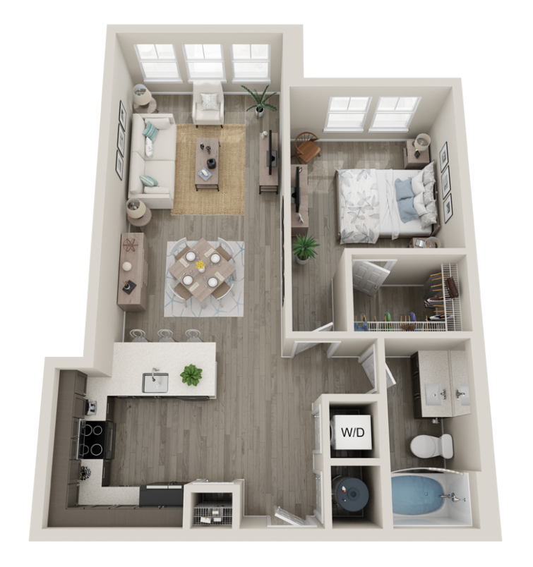 1 Bed, 1 Bath, 717 sq ftAvailable NowModel Gallery