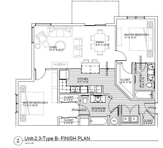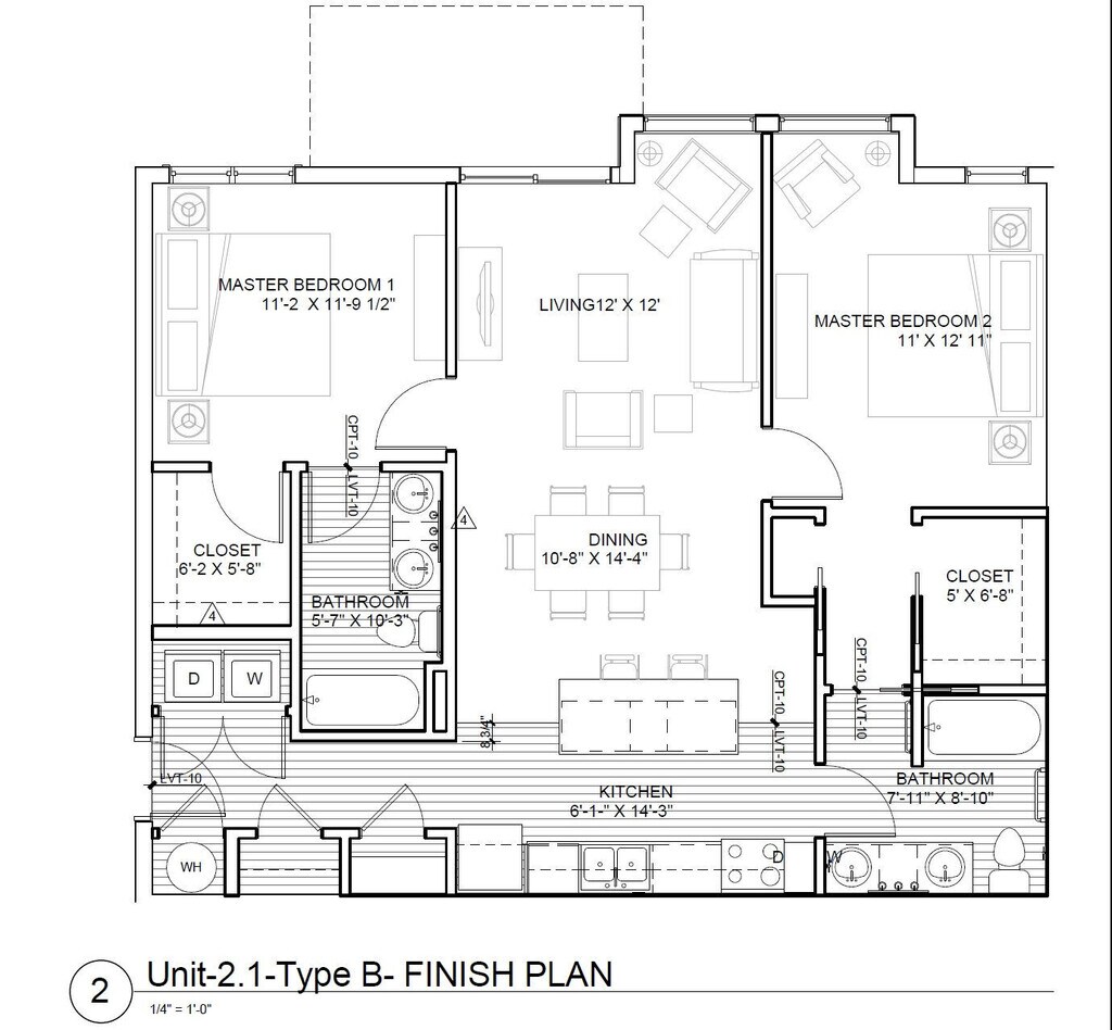1x1 - Floorplan 2 Apartment Unit: 209Apartment Model: 1x1$1,7901 Bedroom, 1 Bath, 684 sq ftAvailable Now2 Bedrooms