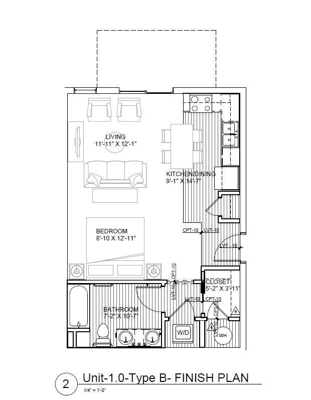 0x1 - Floorplan 2 Apartment Unit: 109Apartment Model: 0x1$1,688Studio, 1 Bath, 552 sq ftAvailable December 7, 20251 Bedroom