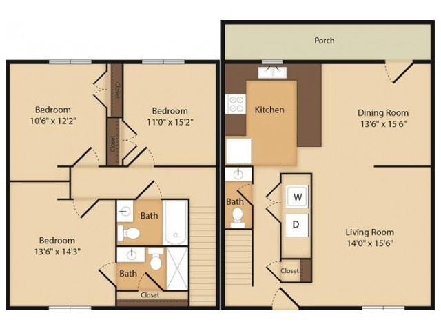 2 Beds, 1.5 Baths, 1225 sq ftAvailable NowModel Gallery