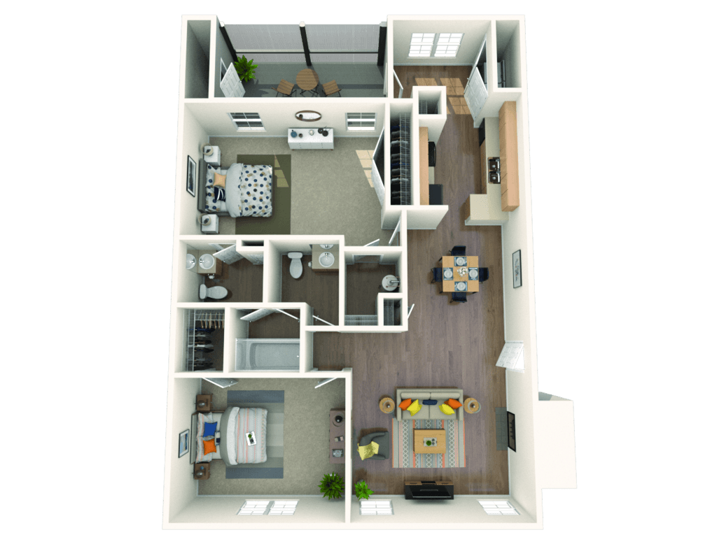 2 Beds, 2.5 Baths, 1225 sq ftAvailable NowLargest 2 BedroomThis is the largest 2 Bedroom at this PropertyModel Gallery
