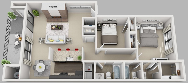 2 Beds, 2 Baths, 1050 sq ftAvailable NowModel Gallery
