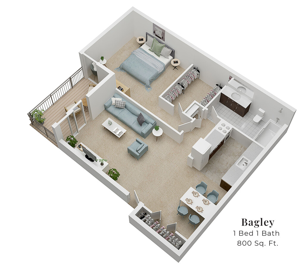 Apartment Model: The Bagley1 Bedroom, 1 Bath, 800 sq ftUnavailable![]()