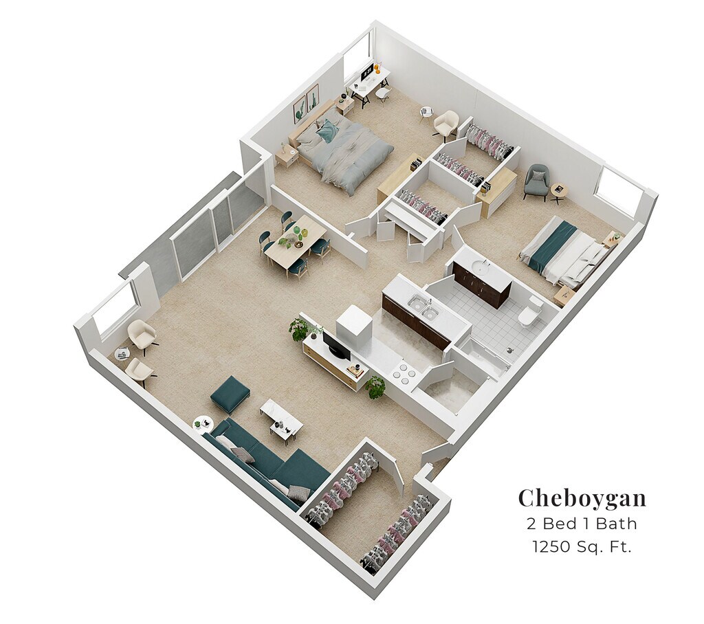 The Cheboygan - Image 8 Apartment Unit: 1031-211Apartment Model: The Cheboygan2 Bedroom, 1 Bath, 1250 sq ftAvailable NowApartment Unit: 1031-212Apartment Model: The Cheboygan2 Bedroom, 1 Bath, 1250 sq ftAvailable NowThe Au Sable