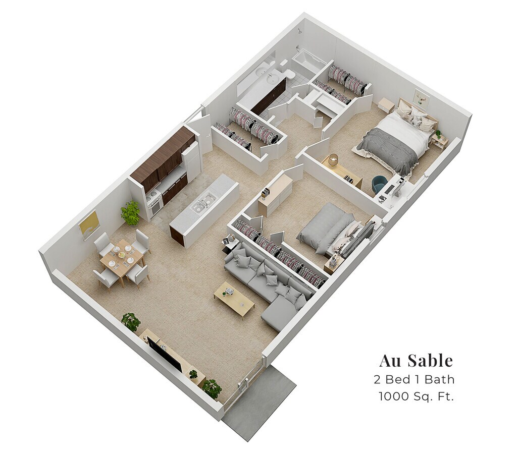 Apartment Model: The Au Sable2 Bedroom, 1 Bath, 1000 sq ftAvailable November 21, 2025![]()