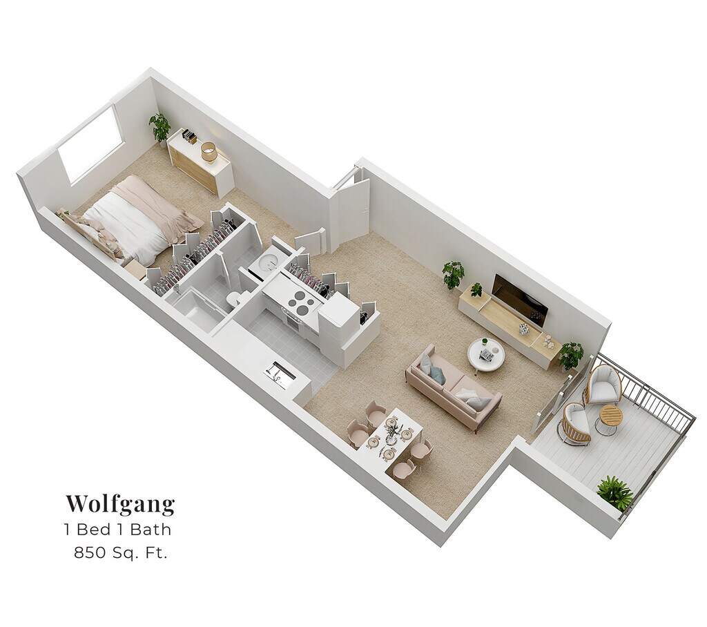 Apartment Model: The Wolfgang1 Bedroom, 1 Bath, 850 sq ftAvailable November 7, 2025![]()
