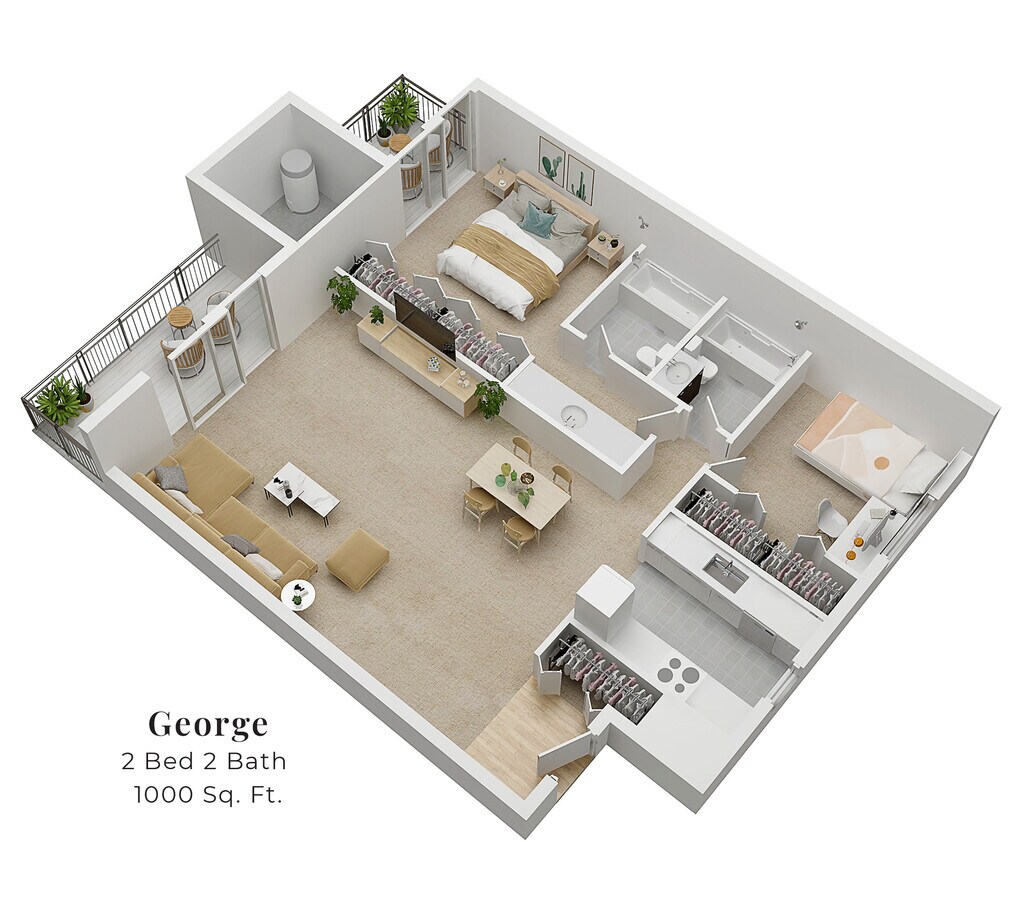 Apartment Model: The George2 Bedroom, 2 Bath, 1000 sq ftAvailable Now![]()