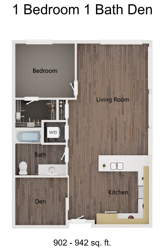 Apartment Model: 1 Bedroom 1 Bath DenCall For Rates1 Bedroom, 1 Bath, 920 sq ftUnavailable1 Bedroom 1 Bath Den - Floorplan 1 2 Bedrooms