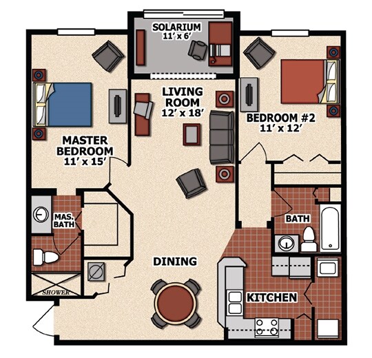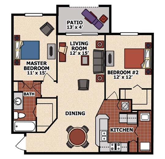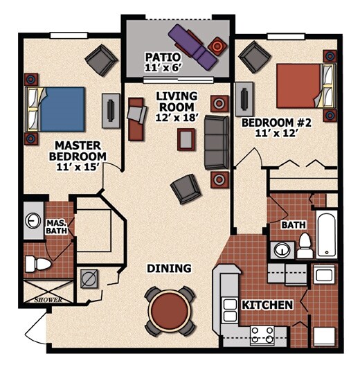 Apartment Model: 2x2 PatioFrom $1,6802 Bedroom, 2 Bath, 1100 sq ftAvailable Now![]()