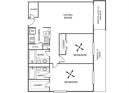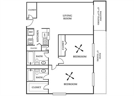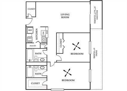 2 Bedroom, 2 Bath - Floorplan 1 2 Bedroom, 2 Bath
