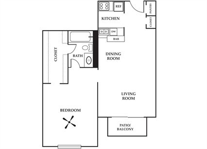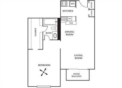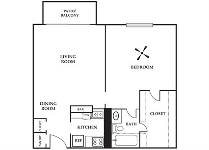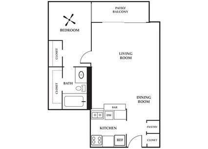 1 Bedroom, 1 Bath - Floorplan 1 1 Bedroom, 1 Bath