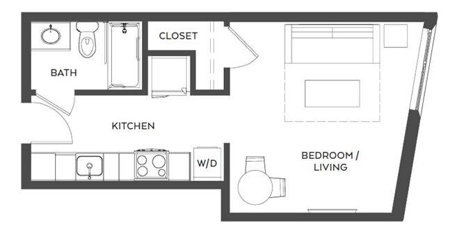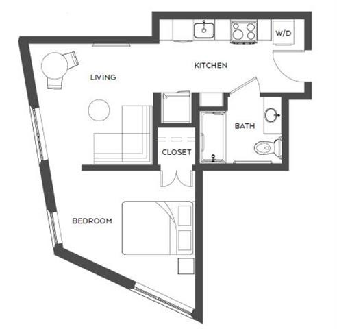 Studio - Floorplan 1 Apartment Unit: 509Apartment Model: Studio$1,275Studio, 1 Bath, 349 sq ftAvailable Now1 Bedroom