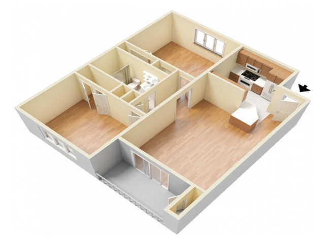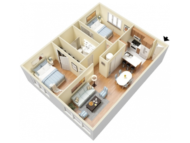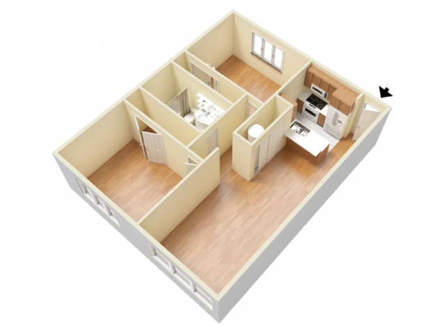 2 Beds, 1 Bath, 770 sq ftAvailable August 17, 2026Largest 2 BedroomThis is the largest 2 Bedroom at this PropertyModel Gallery