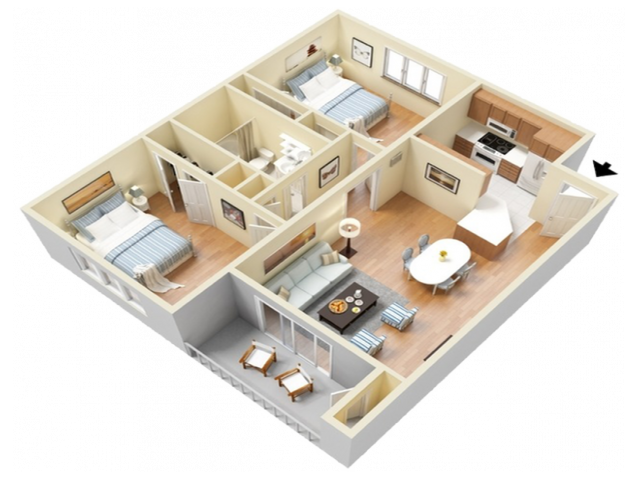 Sycamore - Floorplan 3 Apartment Unit: FurnishedApartment Model: Sycamore2 Bedroom, 1 Bath, 770 sq ftAvailable August 17, 2026Apartment Unit: UnfurnishedApartment Model: Sycamore2 Bedroom, 1 Bath, 770 sq ftAvailable August 17, 2026