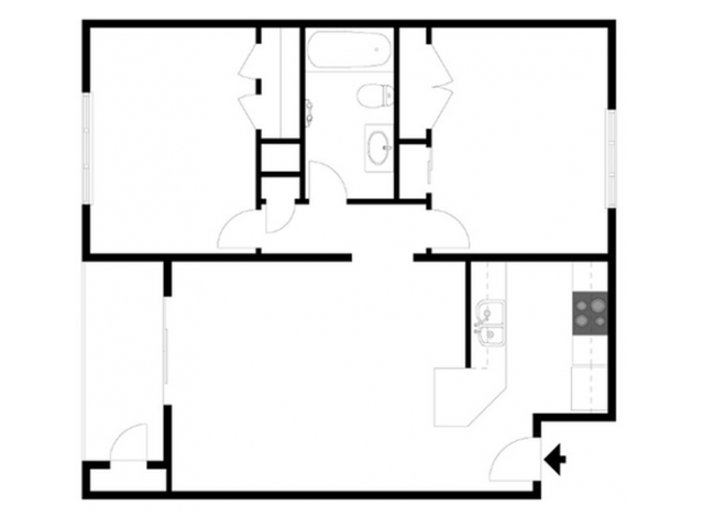 Oak - Floorplan 3 Apartment Unit: FurnishedApartment Model: Oak2 Bedroom, 1 Bath, 463 sq ftAvailable August 17, 2026Apartment Unit: UnfurnishedApartment Model: Oak2 Bedroom, 1 Bath, 463 sq ftAvailable August 17, 2026Sycamore
