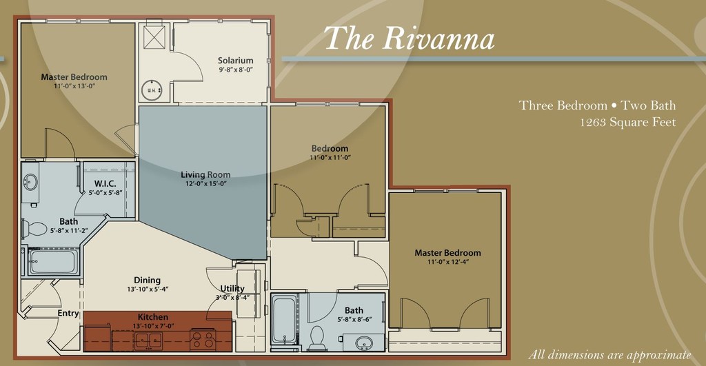 Apartment Model: The Rivanna - HCCall For Rates3 Bedroom, 2 Bath, 1263 sq ftUnavailableThe Rivanna - HC - Floorplan 1 The Rivanna