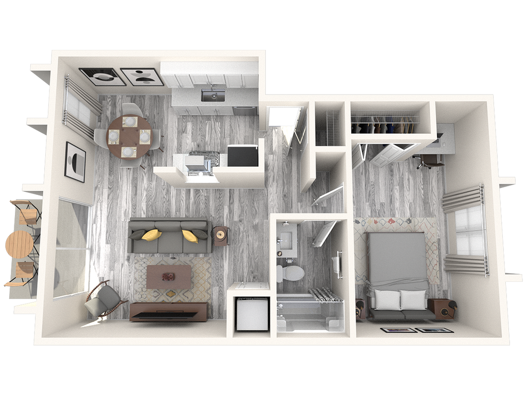 1 Bed, 1 Bath, 558 sq ftModel Gallery