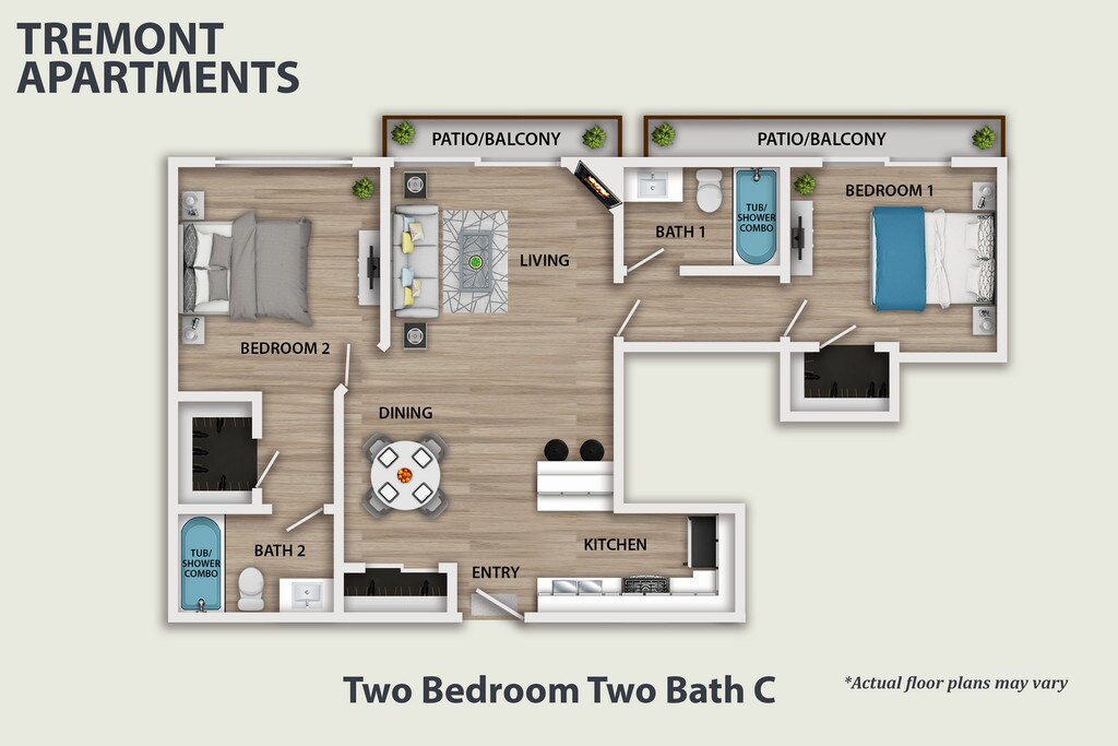 Tremont Apartments offers 2 Bedroom apartments starting from $2,337 and having 740–800 sq ft. Here is the current pricing and availability: