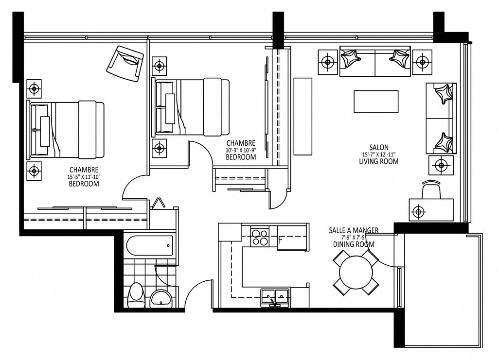 7461 Ch. Kingsley - Plan E - Floorplan 1 Apartment Unit: 0601Apartment Model: 7461 Ch. Kingsley - Plan E$1,8492 Bedroom, 1 Bath, 1070 sq ftAvailable Now