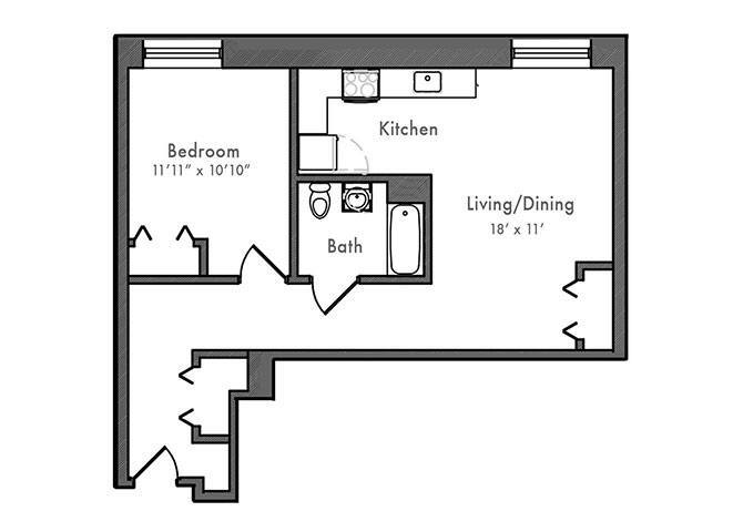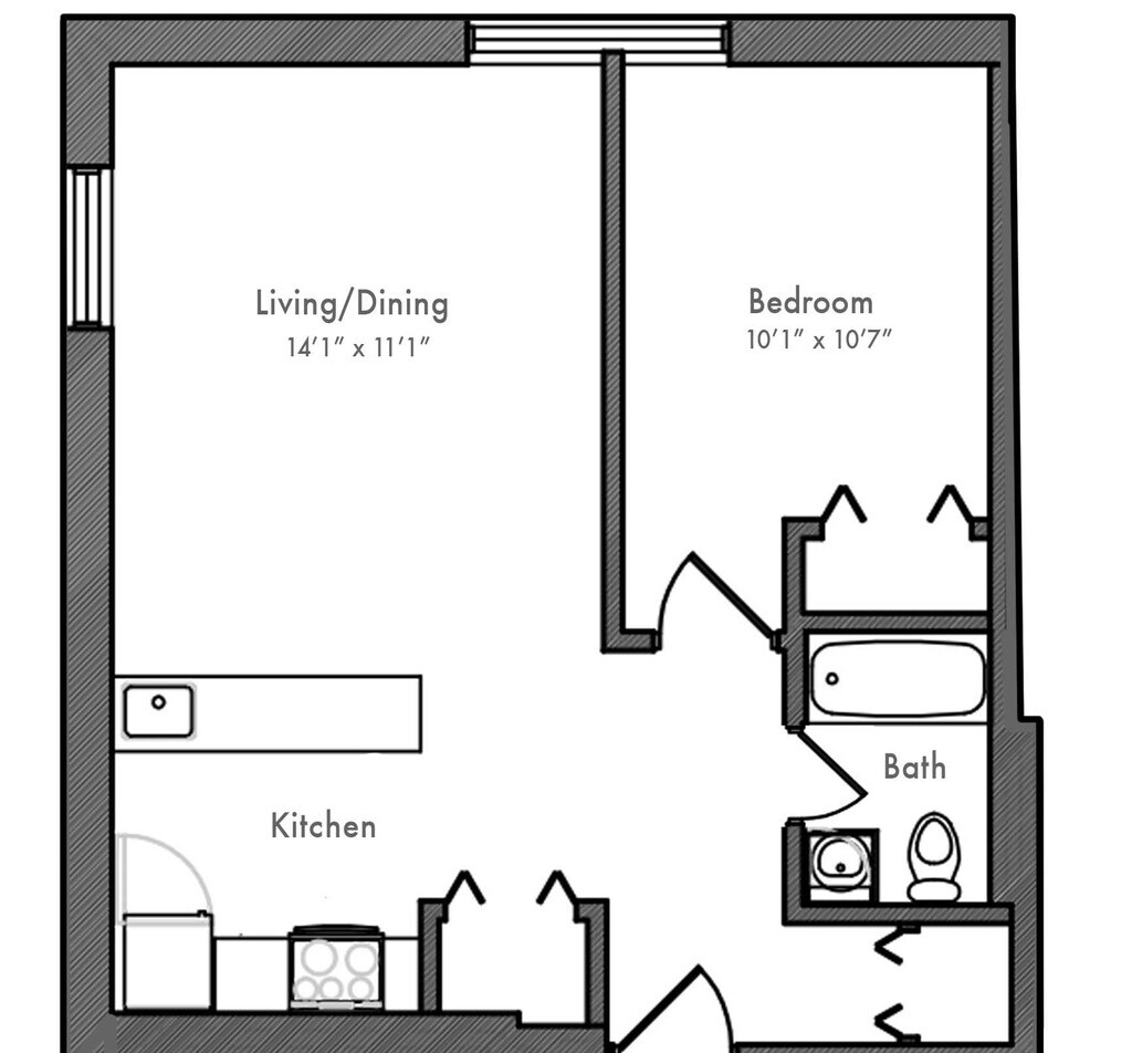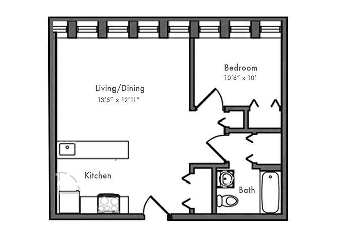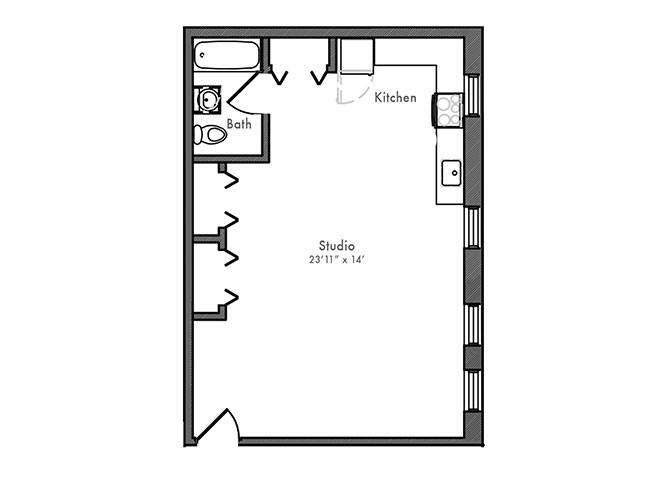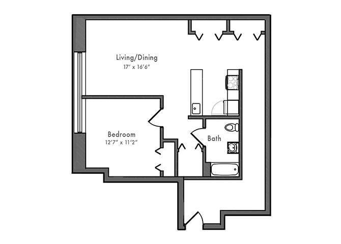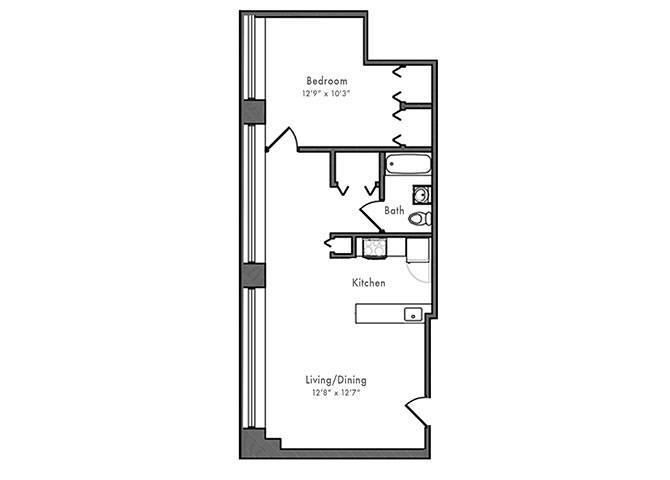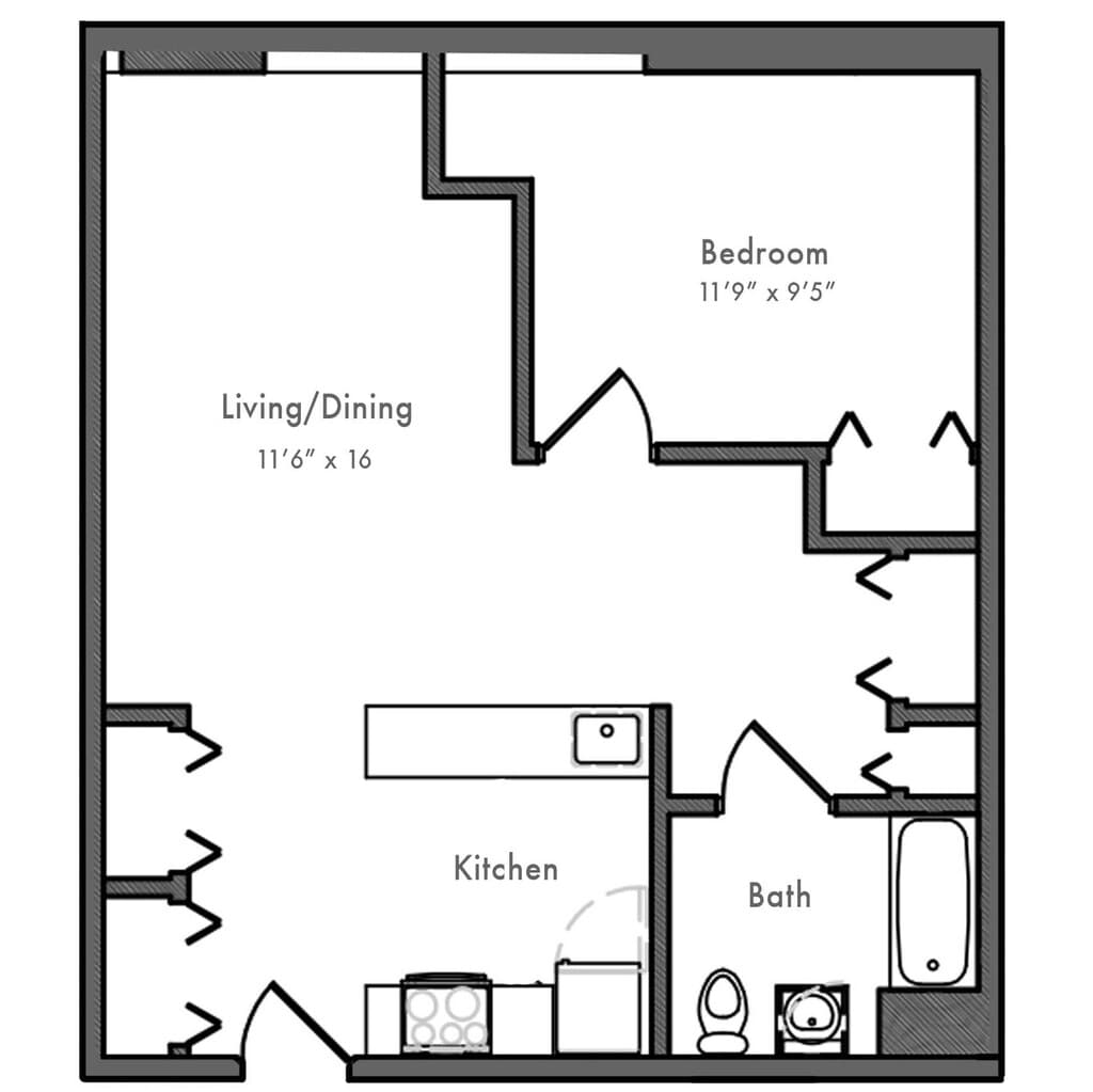 Studio - Floorplan 1 Apartment Unit: 305Apartment Model: Studio$1,212Studio, 1 Bath, 551 sq ftAvailable NowFloorplan S3