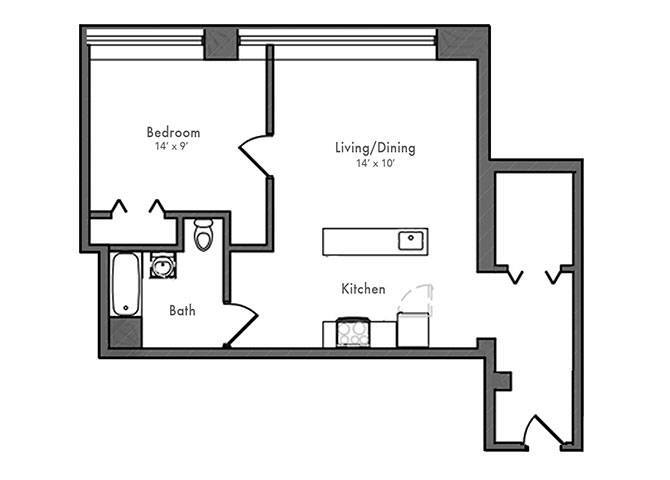 Studio, 1 Bath, 614 sq ftModel Gallery