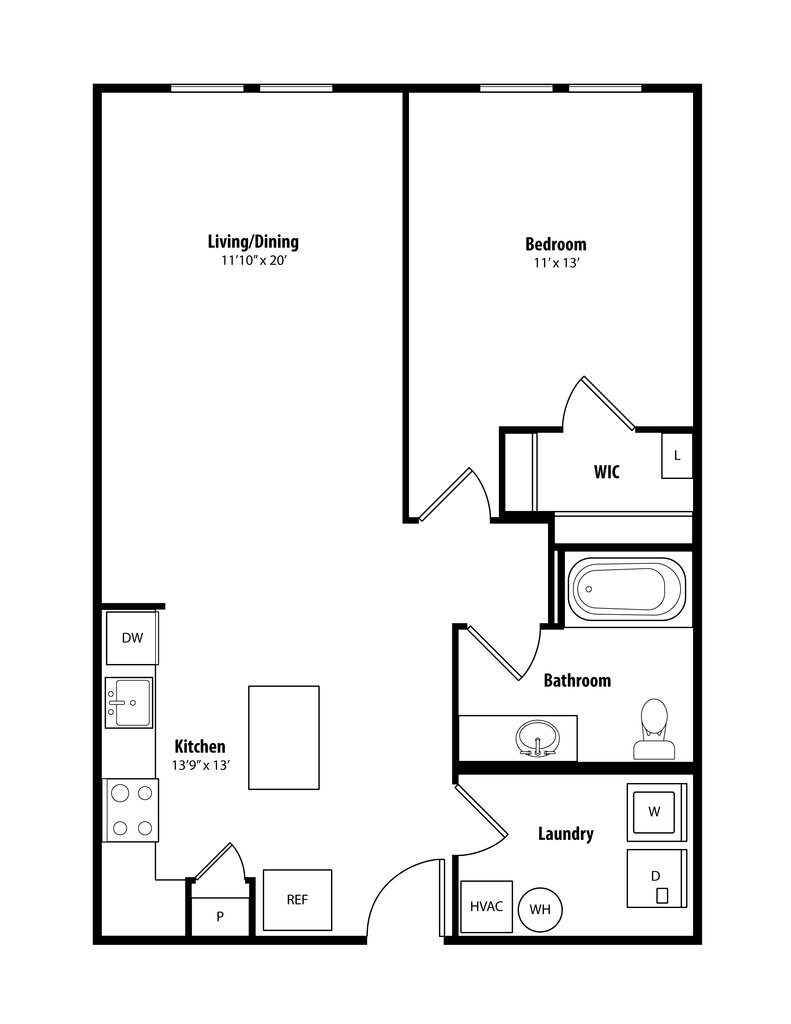 Apartment Model: A1From $1,6051 Bedroom, 1 Bath, 756 sq ftAvailable Now![]()
