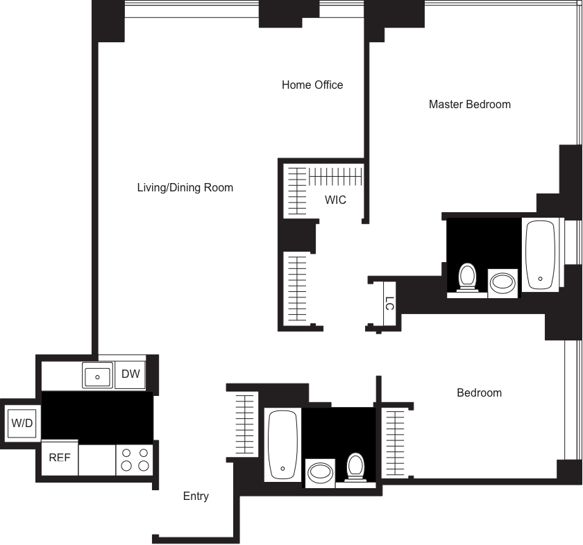 2 Bedroom w/ HO / 2 Bathroom - Floorplan 2 ![]()