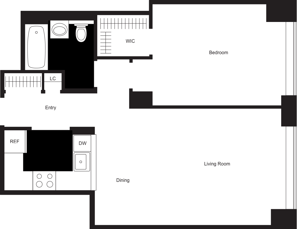 Studio / 1 Bathroom - Floorplan 4 Alcove Studio, 1 Bath