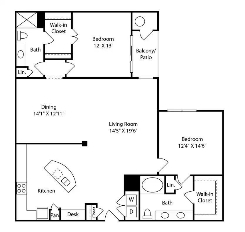 Apartment Model: A2From $2,0111 Bedroom, 1 Bath, 975-1014 sq ftAvailable Now![]()